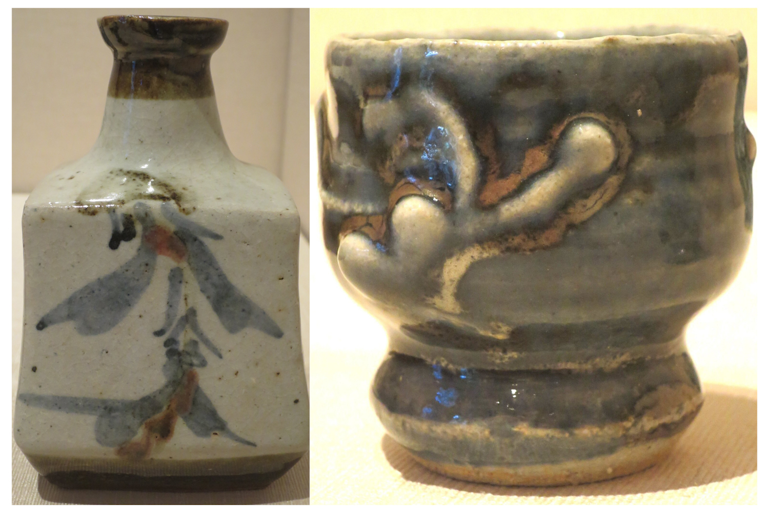 Image d’en-tête : Deux objets Mingei présentés lors de l’exposition « L’esprit Mingei » au Musée du Quai Branly. Gauche : Poterie datant du 17ème siècle (préfecture de Gifu) (wikimedia commons). Droite : Plat datant du 18/19ème siècle (préfecture de Saga) (wikimedia commons)