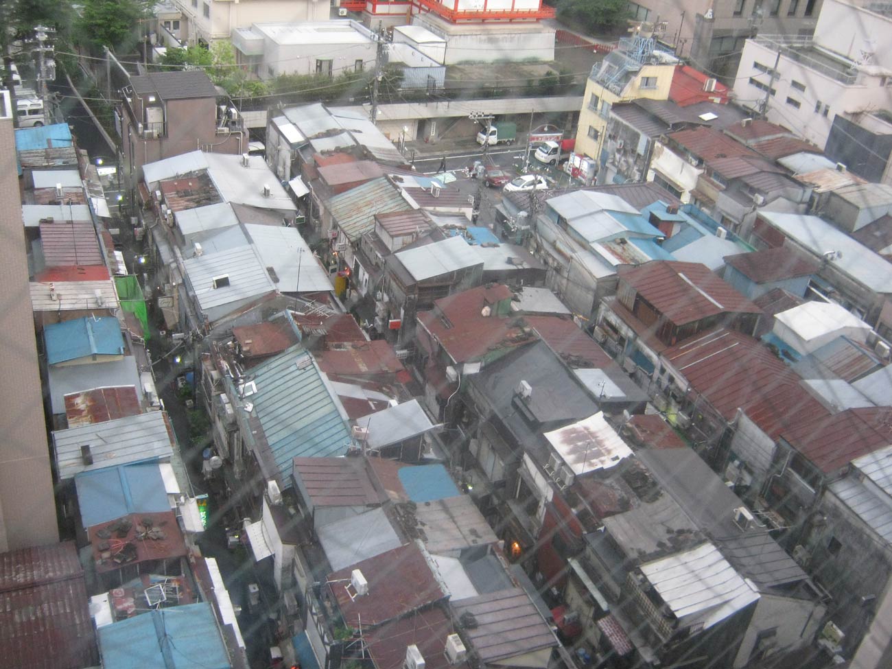 Une autre particularité architecturale réelle de Tokyo : les buildings très fins (極小建築, gokusho kenchiku), immeubles construits sur des parcelles ridiculement étroites, parfois moins de trois mètres de large. Ces structures existent à cause des lois japonaises sur l’héritage qui divisent les propriétés entre tous les enfants, fragmentant progressivement les parcelles sur les générations.